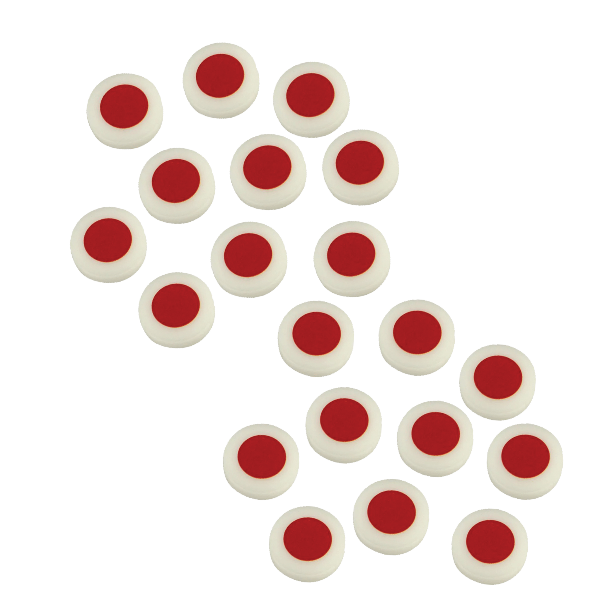 - NEVER LOSE TRACK OF YOUR TOKENS - Easy to see, fit into small places, and keep the table clutter to a minimum. The blue, white, and red circles are UV printed atop a gold acrylic 18mm token.