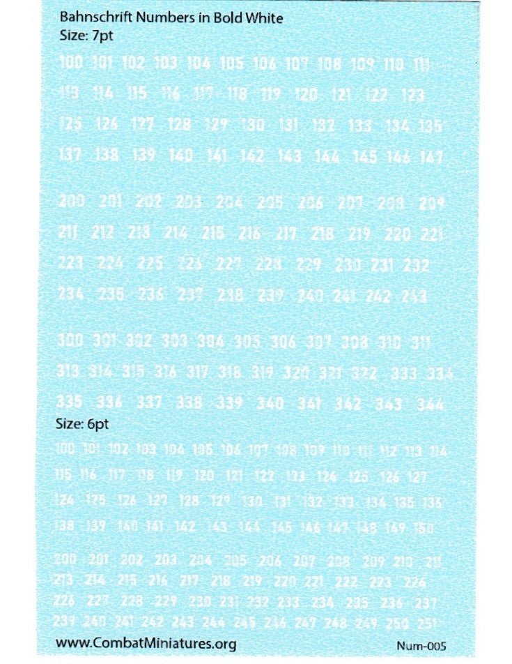 (2) sizes of White Numbers printed in the Bahnschrift Font on a 2.2" x 3.5" Card