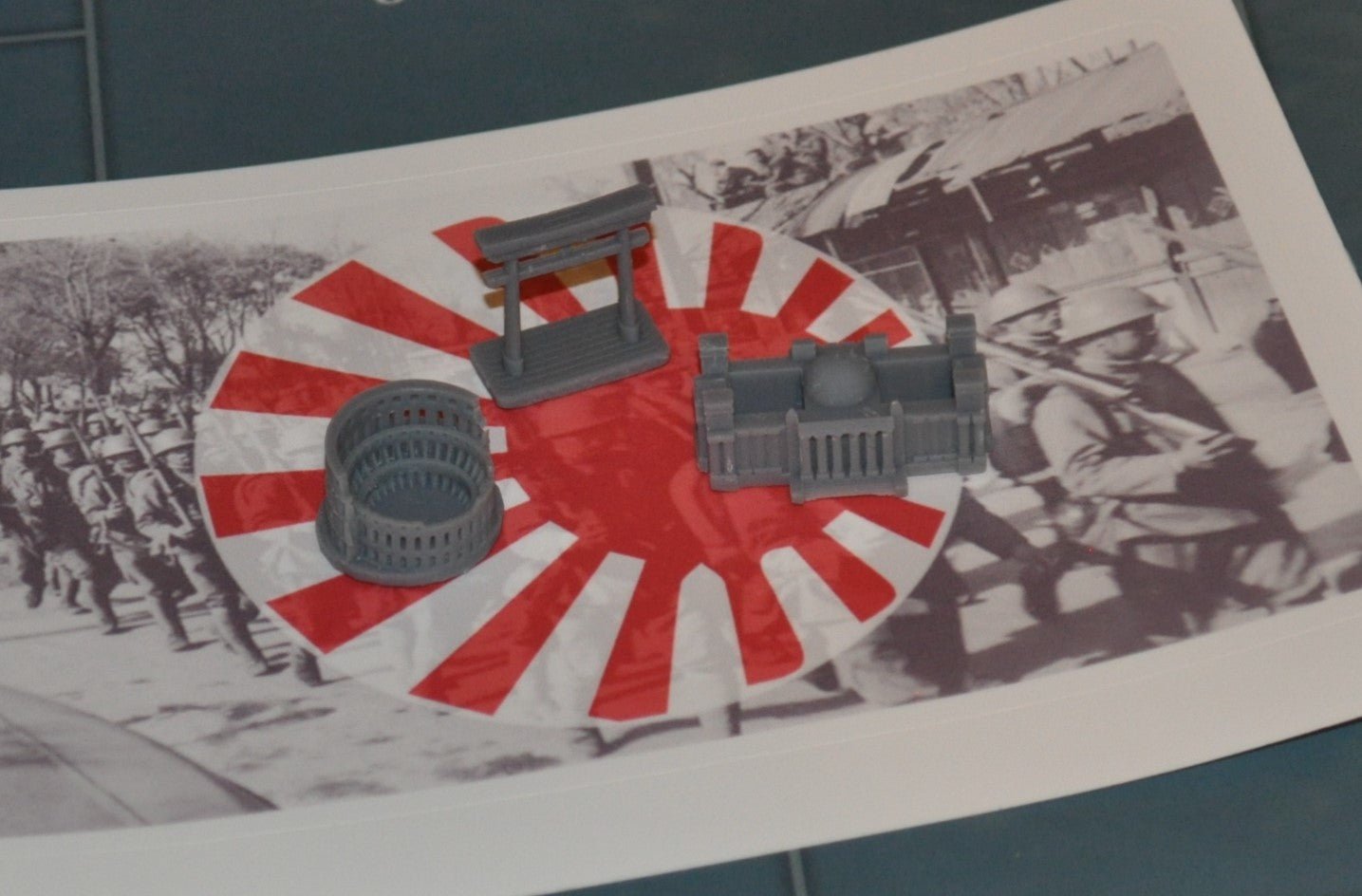 (3) Custom 3D Printed Monuments Representing the Axis Powers in World War 2. You will receive the German Reich Stag, Roman Coliseum & a 5 Tier Japanese Pagoda